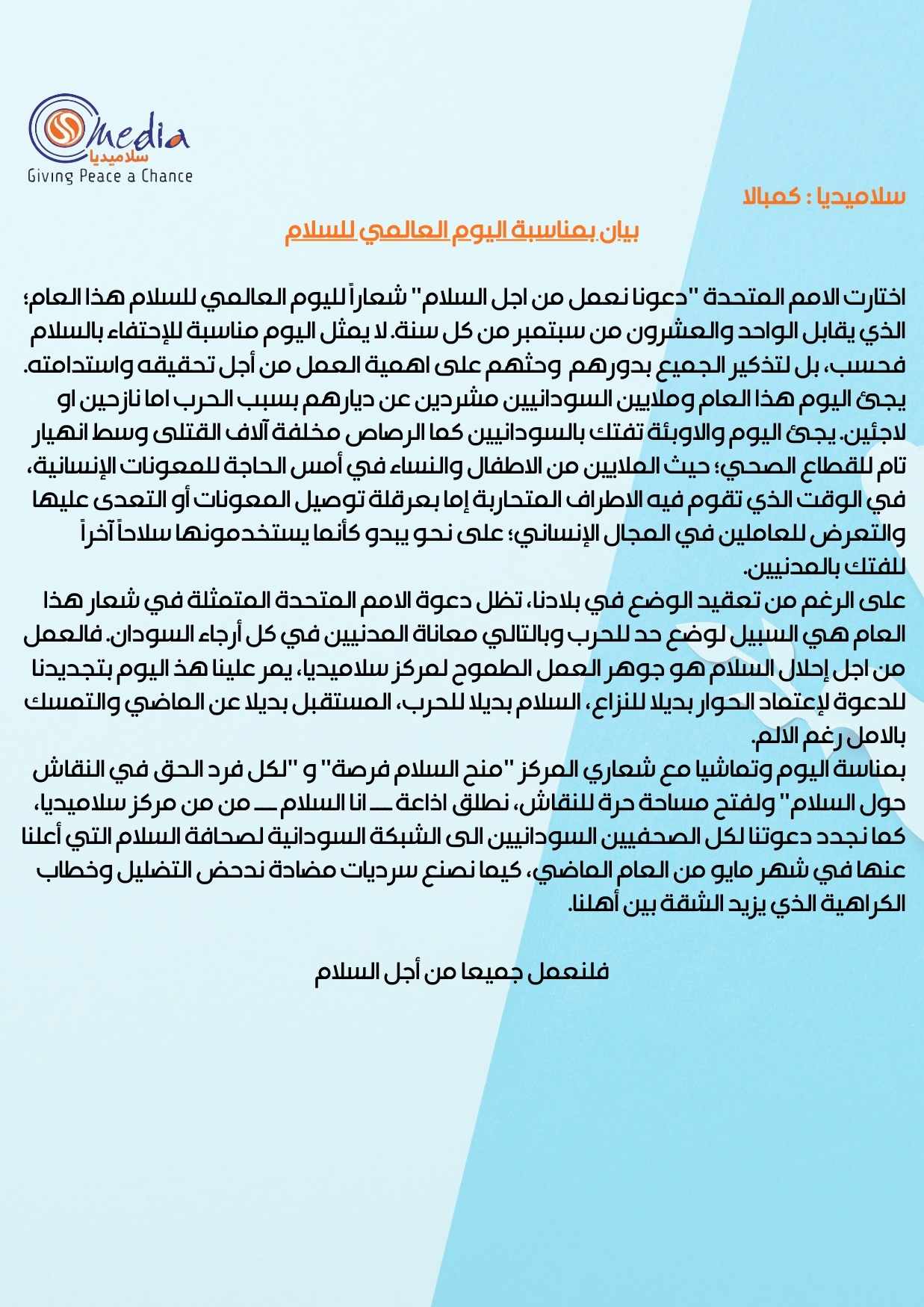 بيان مركز سلاميديا بمناسبة اليوم العالمي للسلام