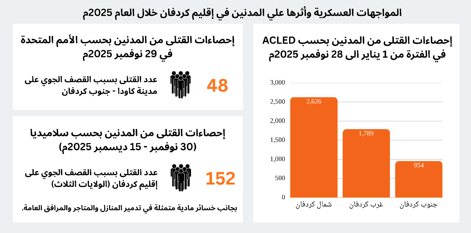 تحولت أزمة السودان إلى فصل جديد مع اشتداد المعارك بين القوات المسلحة وقوات الدعم السريع في إقليم كردفان الذي بات جبهة للقتال الأكثر فتكاً بالمدنيين. وظل المدنيون يدفعون ثمناً باهظاً جراء تصاعد العمليات العسكرية في الإقليم والحصار المضروب على مدن الأبيض، كادوقلي والدلنج، ما أنتج موجة من النزوح الجماعي المتزامنة مع نذر المجاعة التي تلوح في الأفق في وقت تم فيه إجلاء العاملين في المنظمات الدولية العاملة في جنوب كردفان.